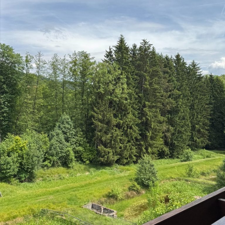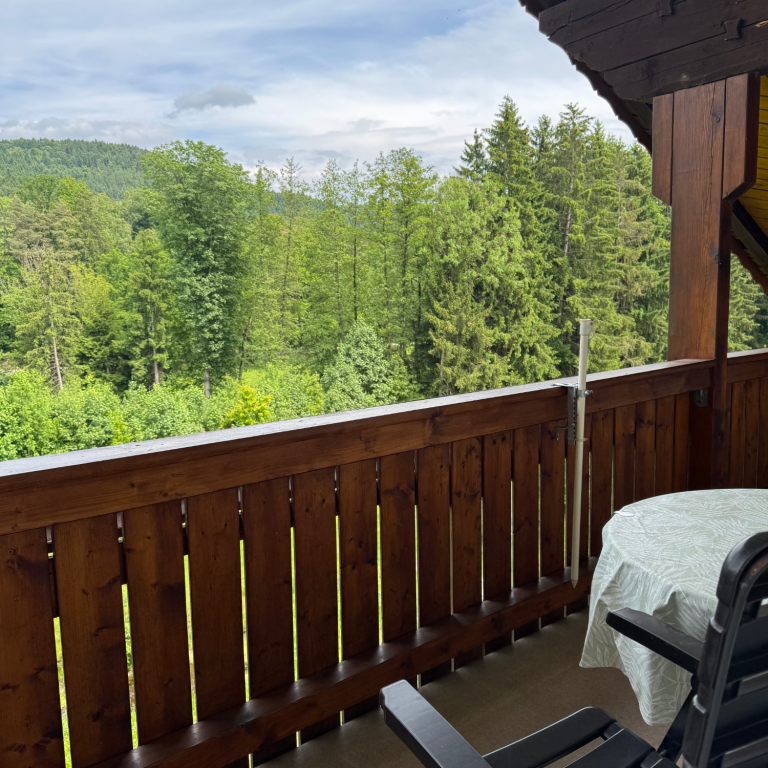 Wettergeschützter Balkon mit Blick ins Grüne