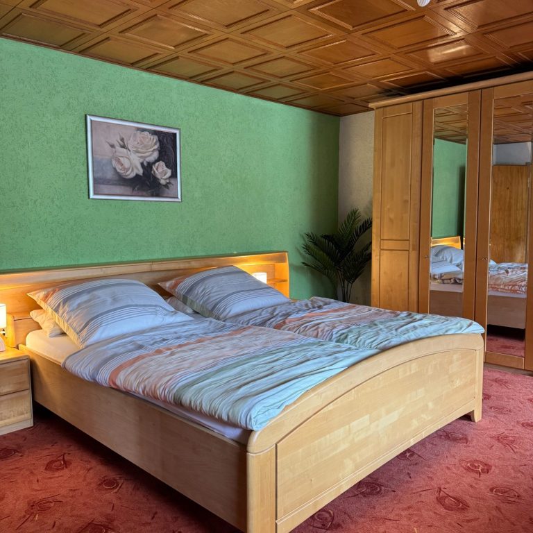 Ein Schlafzimmer mit Doppelbett