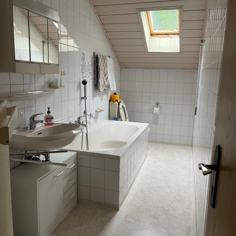 Badezimmer mit Wanne und Dachfenster